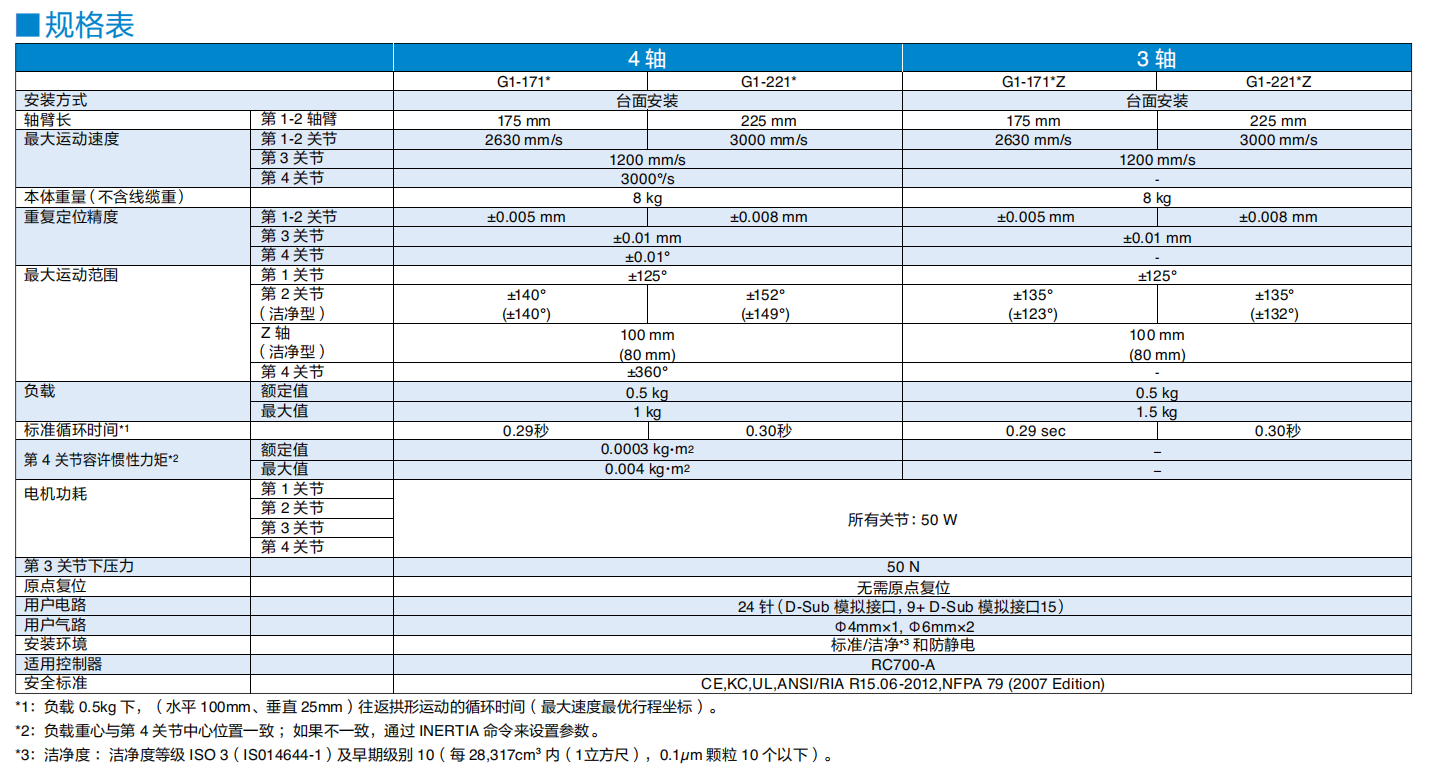 本體重量?jī)H為8kg,愛普生最輕的G系列機(jī)器人,可選擇175mm或225mm軸臂,3軸規(guī)格可提高負(fù)載,負(fù)載額定0.5kg/最大1kg(4軸),額定0.5kg/最大1.5kg(3kg)