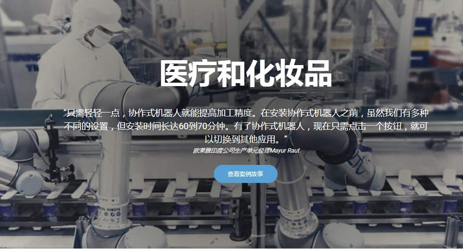 隨著醫(yī)療和化妝品產(chǎn)品生命周期的縮短,協(xié)作自動(dòng)化為制造提供靈活性。優(yōu)傲機(jī)器人的機(jī)械臂可用于盡可能地提高產(chǎn)量和確保質(zhì)量的一致性,還可以迅速重新部署到新的生產(chǎn)線。在整個(gè)行業(yè)內(nèi),協(xié)作式機(jī)器人可用于管理機(jī)床和傳送帶;精確裝配設(shè)備和產(chǎn)品;以及利用罩板包裝、紙箱和托盤(pán)對(duì)產(chǎn)品進(jìn)行裝箱和包裝。
