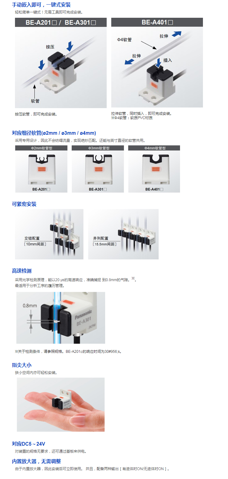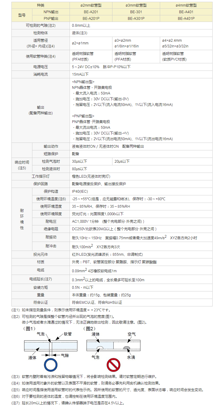對(duì)應(yīng)細(xì)徑軟管的氣泡檢測(cè)傳感器